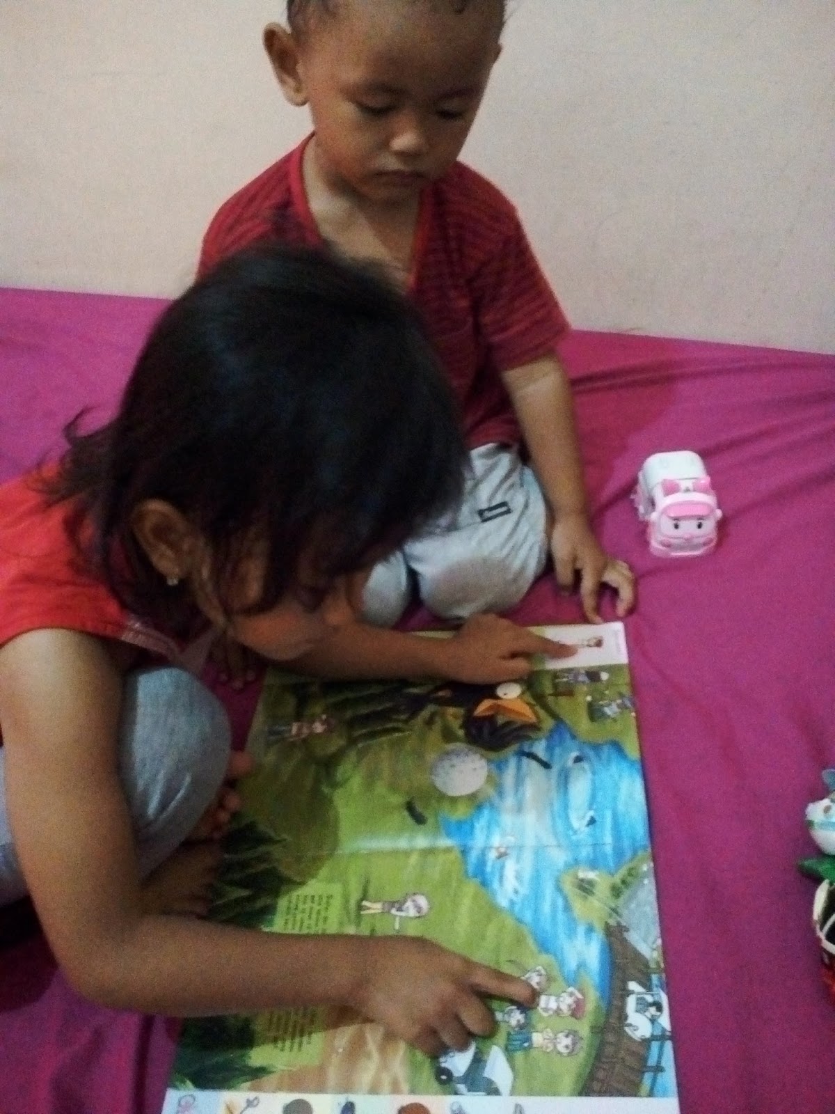 Karena alasan itu kami berusaha mematangkan pra-calistung mereka dahulu dengan berbagai permainan yang mencerdaskan. Agar nanti kami bisa meminimalkan mendengar rengekan mereka, “ummi, males mbak baca ini banyak bener”, “ummi, capek adek nulis ini”, “ummi, adek gak suka matematika bikin pusing aja”. karena jujur emaknya males banget yang namanya nulis sampe-sampe dulu waktu zaman muda (baca:sekolah) hobinya minjam catatan temen trus difotocopi dan ditempel di buku catatan 😅 jangan ditiru ya nak…